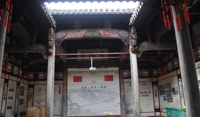 建筑简介:"该建筑坐北朝南,砖木结构,四合院式。前堂、正堂均为抬梁式、硬山顶。正堂上方挂有木匾,额题“养和堂”。建筑布局完整,结构稳固,前堂、正堂内堆放农具等杂物。但牛腿及梁架等木构件雕刻精美,具有一定的艺术、历史价值。目前作为村文化礼堂功能使用。该建筑形制典型,它是一处民间宗族文化形态的宿影,对研究地方祠堂文化有一定的历史与艺术价值。"
