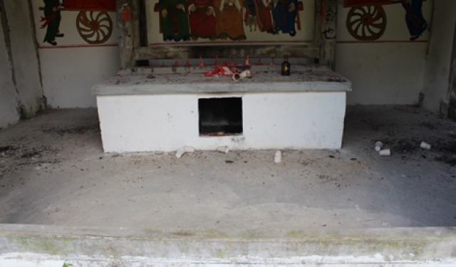 建筑简介:"该建筑坐东南朝西北,砖木结构,抬梁式,硬山顶。现神像不存,所祀何神不明。建筑布局基本完整,结构不够稳固,梁架部分霉烂。目前暂无使用功能。该建筑形制典型,它是一处民间宗教信仰文化形态的宿影,对研究地方宗教文化有一定的历史与艺术价值。"