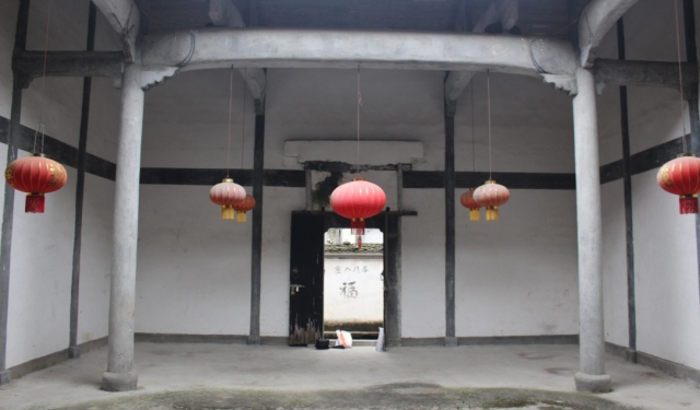 建筑简介:"该建筑坐西南朝东北,砖木结构,四合院式,抬梁式,硬山顶;正堂梁架及楼板彩绘精美。建筑布局基本完整,已经过维修。目前暂无使用功能。该建筑形制典型,它是一处民间宗族文化形态的宿影,对研究地方祠堂文化有一定的历史与艺术价值。"