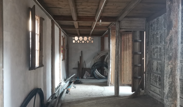建筑简介:坐西朝东,面宽11.80米,进深8米,穿斗式,硬山顶,明间台上有雕花,东瓜梁及天花板。