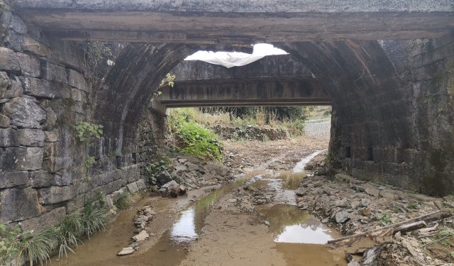 位于厚屏自然村朱家西侧800米处。据该村朱后杰(84岁)介绍,此桥始建于清代,单孔石拱桥,东北西南走向横跨考川溪,溪水自东南流向西北,桥长 7米,桥宽 3.45 米,桥高 4.9米,跨度 4.6 米,矢高 2.4 米,桥顶面主出地面 0。4 米,供圈并列砌置,桥东南侧拱券上阳刻“考般桥”,西北侧原题刻被撬,此间座落在田野中间,是原考川,朱家出入必经之道,