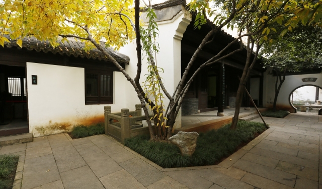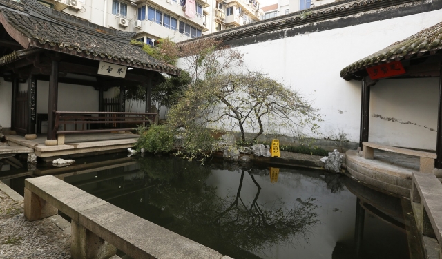 从二院东墙南端圆洞门入内为花园。花园中央凿池塘一口,池塘北面为琴台,东南面为思贤亭。西墙上嵌清光绪四年(1878)所立“明兵部尚书赠太傅谥忠肃于公遗像”碑。