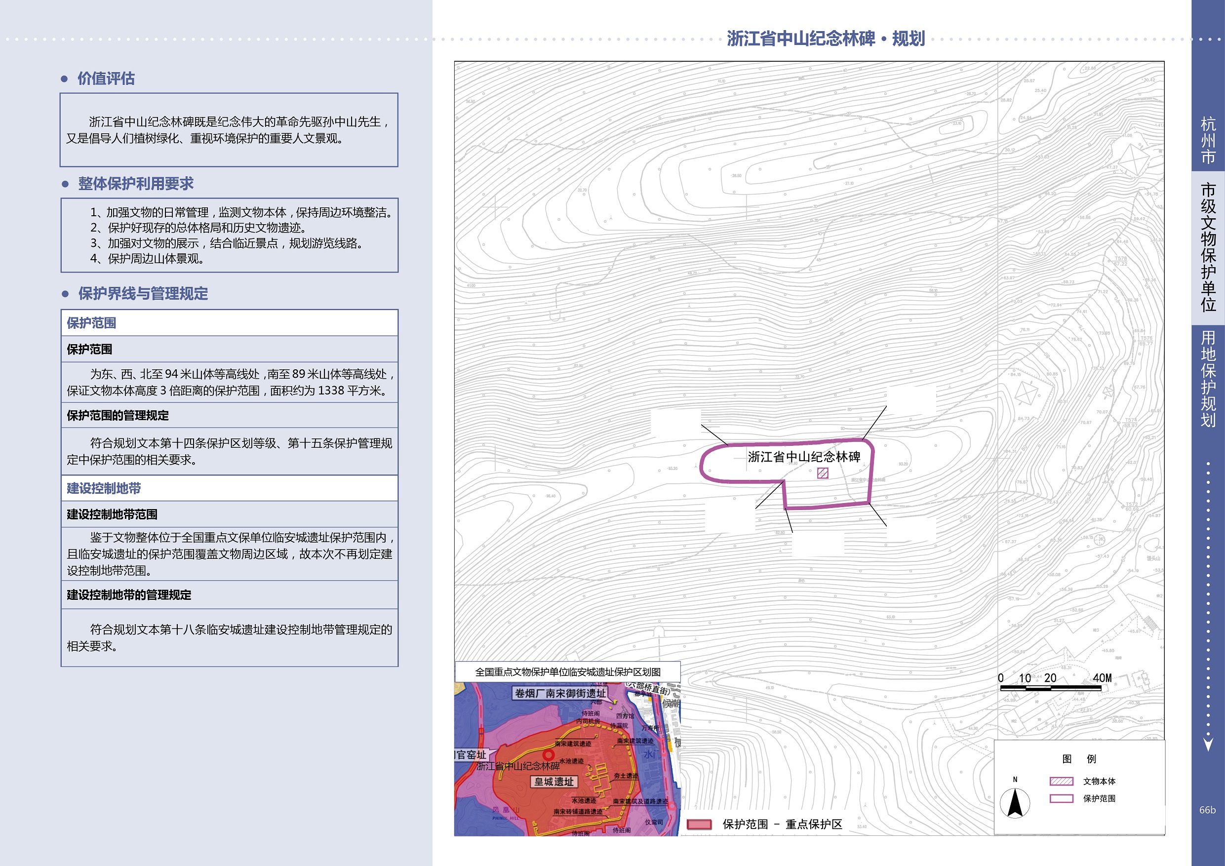浙江省中山纪念林碑既是纪念伟大的革命先驱孙中山先生,又是倡导人们植树绿化、重视环境保护的重要人文景观。孙中山先生一生十分重视植树造林。1914年11月颁布了我国近代史上第一部《森林法》。1928年,为纪念孙中山先生逝世3周年,举行了植树仪式,并将植树节由原来的清明提前到他的忌辰,即3月12日。这个传统一直延续至今。