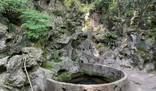 井呈弧形,圈内径2.4米,井圈石筑,透雕云纹。井深2.6米,井水清澈甘洌,终年不涸。