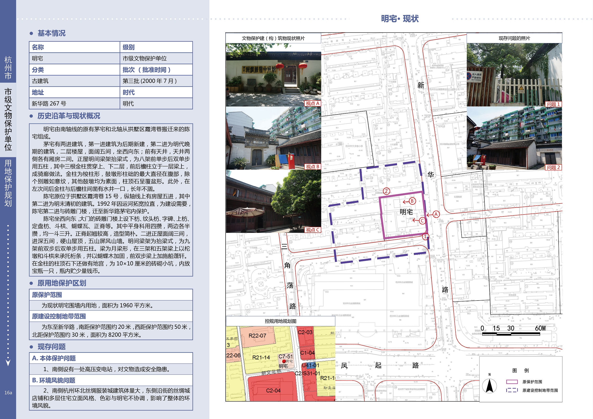 明宅是杭州为数不多的明代民居建筑。该宅现由南轴线的原有茅宅和北轴线从霞湾巷搬迁来的陈宅组成,占地2.8亩。