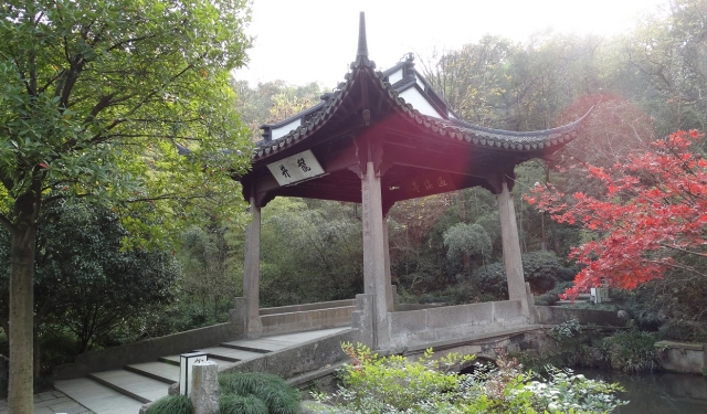 亭址原在风篁岭上,约于明中叶移建今址。清乾隆御题为“龙井八景”之一。亭历经改建、重建,现为1916年重修。木构歇山顶,四石柱立于单孔石拱桥上,桥梁跨玉沟涧。亭为东西向,面阔、进深均为4.75米。