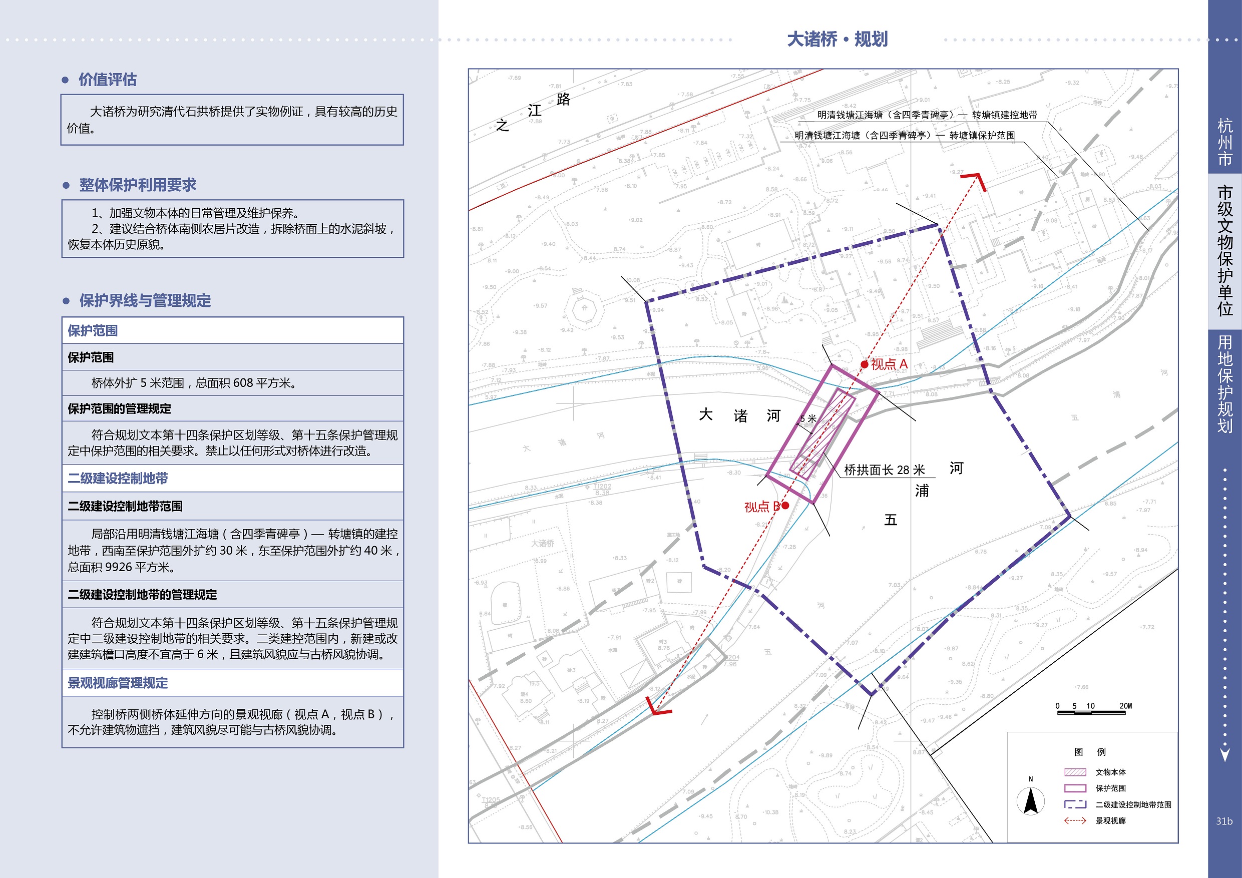 大诸桥曾经是钱塘江口的重要桥梁,昔日来杭船只常自江而入,泊于桥旁,从这里登岸入市。大诸桥是杭州古代水运贸易的实物见证,也是钱塘江潮水及海塘的历史见证,具有较高的文物价值。