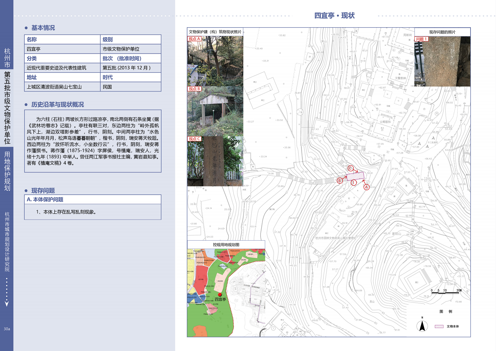 四宜亭保存较为完好,富有浓厚的文化气息,为吴山重要历史文化遗迹。