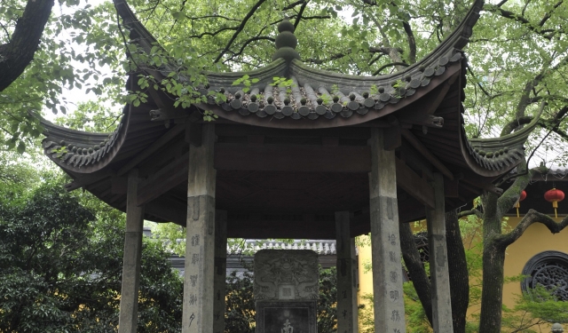 在净慈寺山门右边有一座“南屏晚钟”碑亭,杭州著名的西湖十景之一——南屏晚钟就是在净慈寺内钟楼叩响的。净慈寺的钟声在历史上久负盛名。