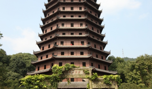 北宋开宝三年(970),吴越国王钱弘俶决定建塔镇住钱塘江潮水危害。塔由延寿、赞宁主持督建,名六和塔,又名六合塔。北宋末年毁于兵燹,南宋绍兴年间重建,后多次修缮。塔平面呈八边形,高59.89米,占地867平方米。外观为十三层,内部塔体为七层,塔内有阶梯可登,每层内部有回廊及塔心室,塔内须弥座上雕飞天、花卉、鸟兽等图案。砖砌塔身外每层有木构回廊,每层内、外回廊间辟壸门、甬道。六和塔是我国现存最完好的砖木结构古塔的杰出代表之一。