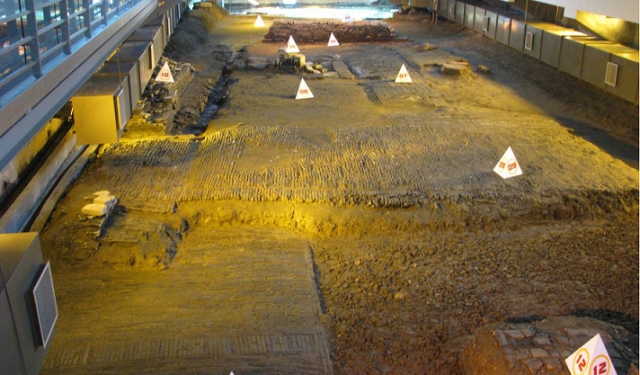 中山中路御街遗址位于杭州市上城区清波街道惠民苑社区中山中路112号,东距光复路约35米、南距金波桥弄约13米,西与浙江地方银行旧址相邻,北距惠民路约30米。遗址坐落在中山中路的繁华街区。 2008年3~4月,为配合中山路综合保护与有机更新工程的建设,经国家文物局批准,杭州市文物考古所对工程沿线进行考古调查,并在中山中路南段进行考古发掘。发掘地点位于鼓楼以北的中山中路112号,北距惠民路约30米,南距金波桥弄约13米,东距光复路约35米,西与浙江地方银行旧址相邻。发掘面积95平方米,发现上下叠压的两层南宋御街及临街建筑遗迹。 南宋前期御街遗迹包括砖砌道路遗迹(L5)和排水沟(L5G1、L5G2)。 南宋后期御街遗迹包括石板道路遗迹(L4)、排水沟(L4G1、L4G2)和房屋建筑遗迹(F2)。 据文献记载,南宋御街是皇帝于“四孟”到景灵宫朝拜祖宗时“乘舆所经之路”。由于皇城位于整个临安城的最南端,景灵宫则位于临安城的西北部,因此南宋御街是由南及北,并向西北方向延伸。南宋御街以朝天门(今鼓楼)和观桥(今贯桥)为界分为三段。本次发掘是首次在临安城商业繁华的御街中段进行考古工作,虽然面积较小,但收获很大。 1、受发掘现场的制约,南宋御街的宽度一直是尚未解决的悬案,中山中路御街的发现,首次探明了南宋御街的宽度。 2、文献记载南宋御街用数万块石板铺筑而成,但以往考古发现的均为砖砌御街,中山中路同时发现的两层不同材质的御街,表明南宋御街经过了由砖砌到石板铺筑的演变,从而解决了长期以来南宋御街的“砖石之争”。 3、本次发掘在南宋御街之上还发现了元代、明清、民国等其他时期的道路遗迹,由早及晚逐层叠压,发展演变序列清晰,用材与砌筑方法各不相同,直观展现了中山路这条老街的深厚文化底蕴和杭州城的发展脉络。