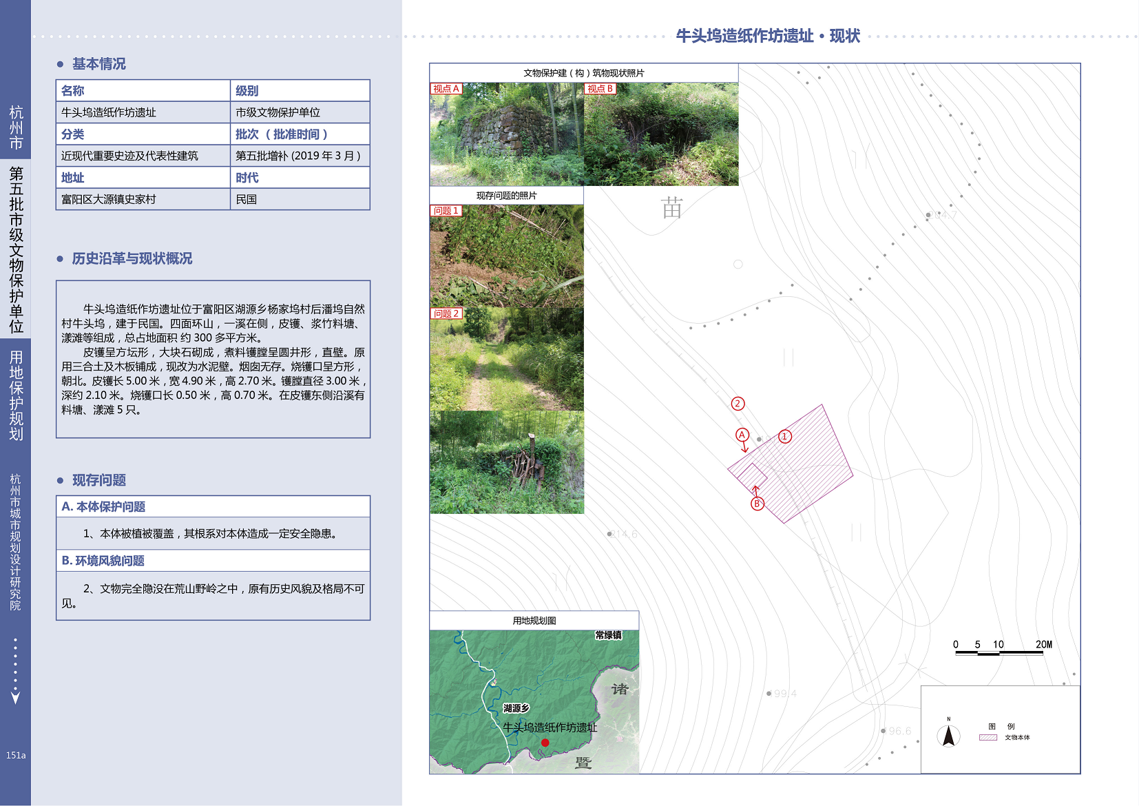 牛头坞造纸作坊遗址遗存较为集中,基本保持原有格局,且保存基本完好,对于研究富阳传统造纸生产具有重要的参考价值。