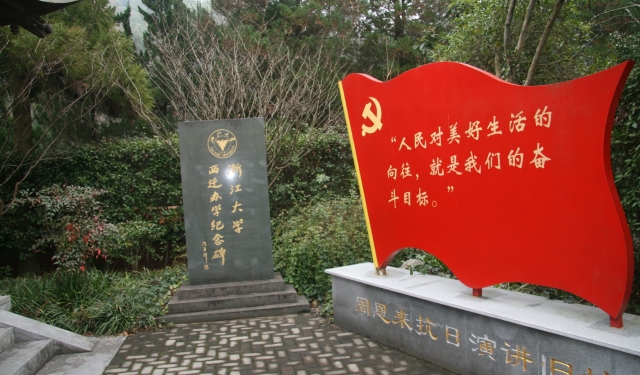 演讲旧址坐东朝西,由碑亭、浙西一中天目山建校纪念碑、浙江大学西迁办学纪念碑、周恩来抗日演讲旧址碑和广场组成,总占地面积约800平方米。
