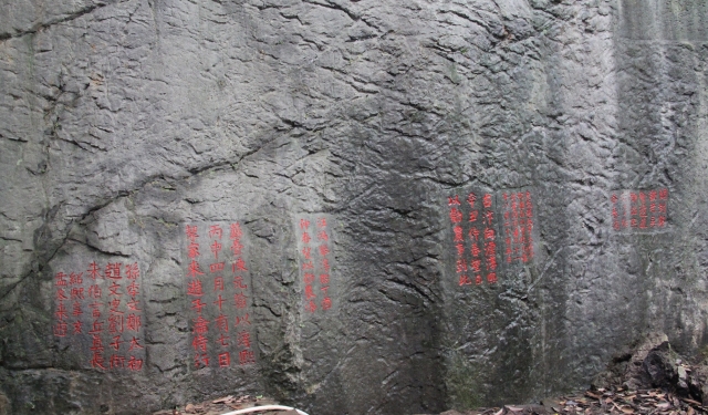 南宋石刻四:镌刻于淳熙十一年(1184),内容为“东武赵大亨、太原黄邦远、嘉兴曾□、阳□邵普同游,淳熙十一年八月二十有五日。”