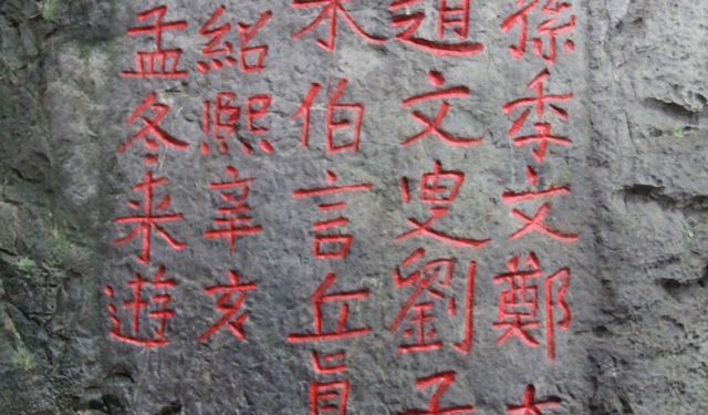 南宋石刻六:镌刻于绍熙二年(1191),内容为“孙季文、郑太初、赵文叟、刘子衔、朱伯言、丘真长,绍熙辛亥孟冬来游。”