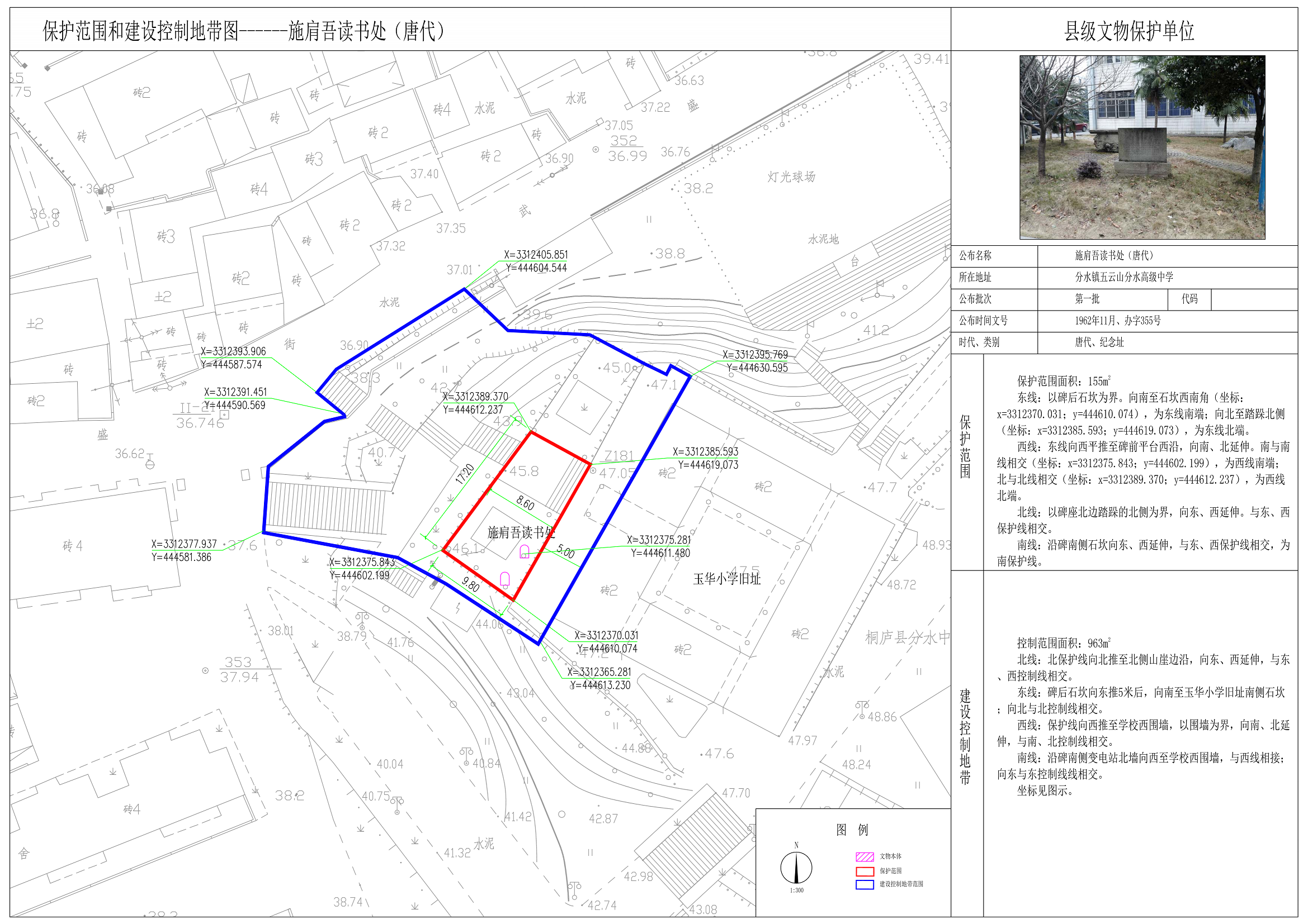 施肩吾读书处旧时有玉尺楼、关帝庙、洗砚池等,后改作校舍。现尚存“唐状元施东斋先生读书处”碑、“洗砚池” 碑和一张石雕供桌。