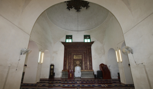 大殿为元代建筑,面阔三间,矩形平面,砖结构,顶部由三个穹隆顶组成无梁殿顶,外观成三个攒尖顶,中间为重檐八角,两边为单檐六角,具有明显的中国传统建筑与伊斯兰教建筑相互融合的特色。内部以圆拱门相通,内壁四隅上端转角处作菱角牙子叠涩。殿内穹窿顶彩画是明代遗物,题材多为卷草、花卉,亦有山水、建筑物和飞禽等。明间紧贴后墙中部有 “读经台”与明景泰二年(1451)的“天经一函”(阿拉伯文作:“米哈拉布”,即朝向标志,为祈祷者礼拜的焦点。)