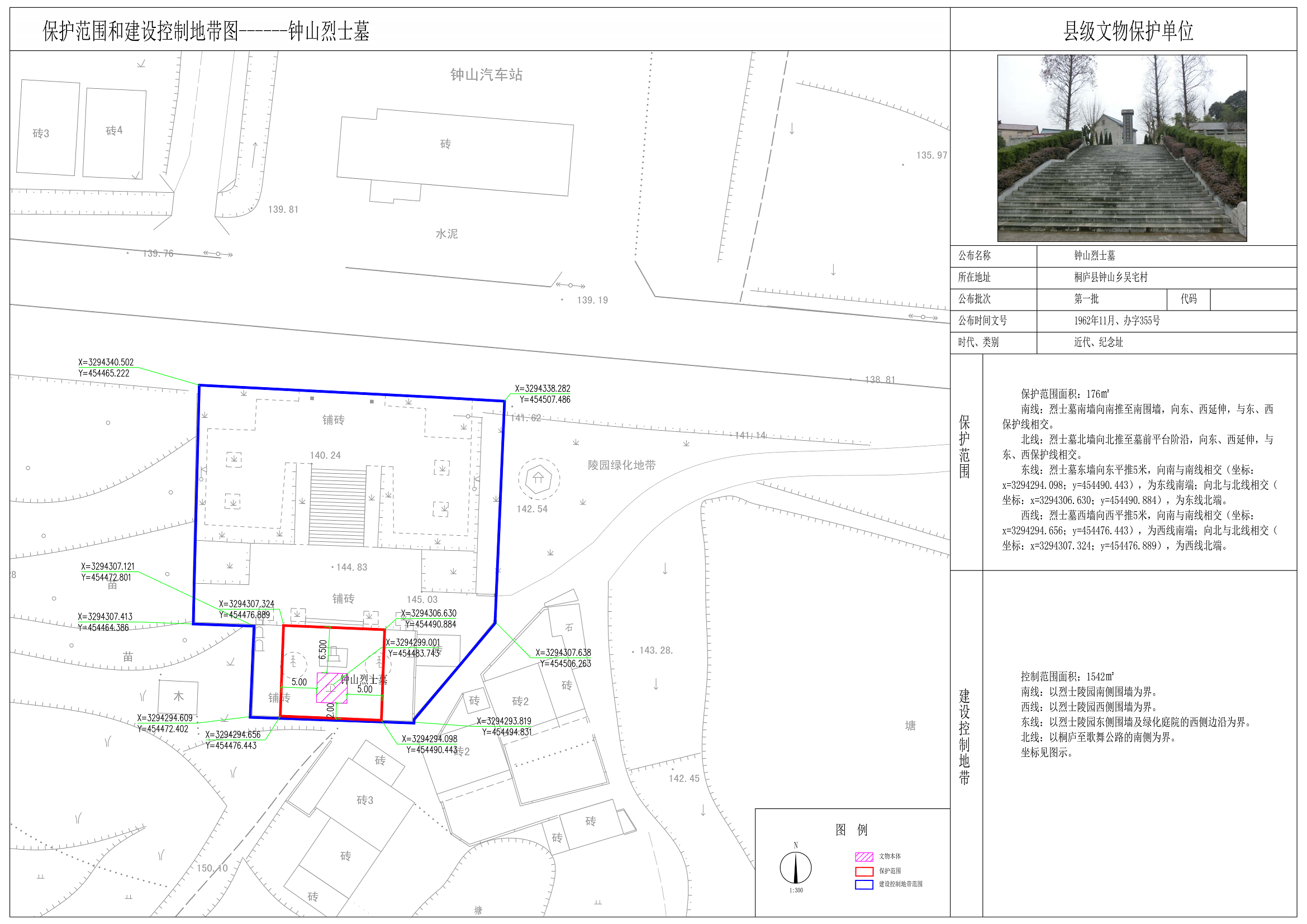 1955年,桐庐县民政局主持将散于附近的烈士墓统一安葬。1966年县人民政府扩建了墓园,修筑了地坪,以供人缅怀参观。1995年烈士墓又一次维修,加设围墙和栏杆。2006年,县人民政府、钟山乡人民政府和民众集资维修扩建,使之成为占地面积2100余平方米的烈士陵园。烈士墓坐南朝北,为圆形砖室墓,水泥砂浆抹面,块石墓墙。
