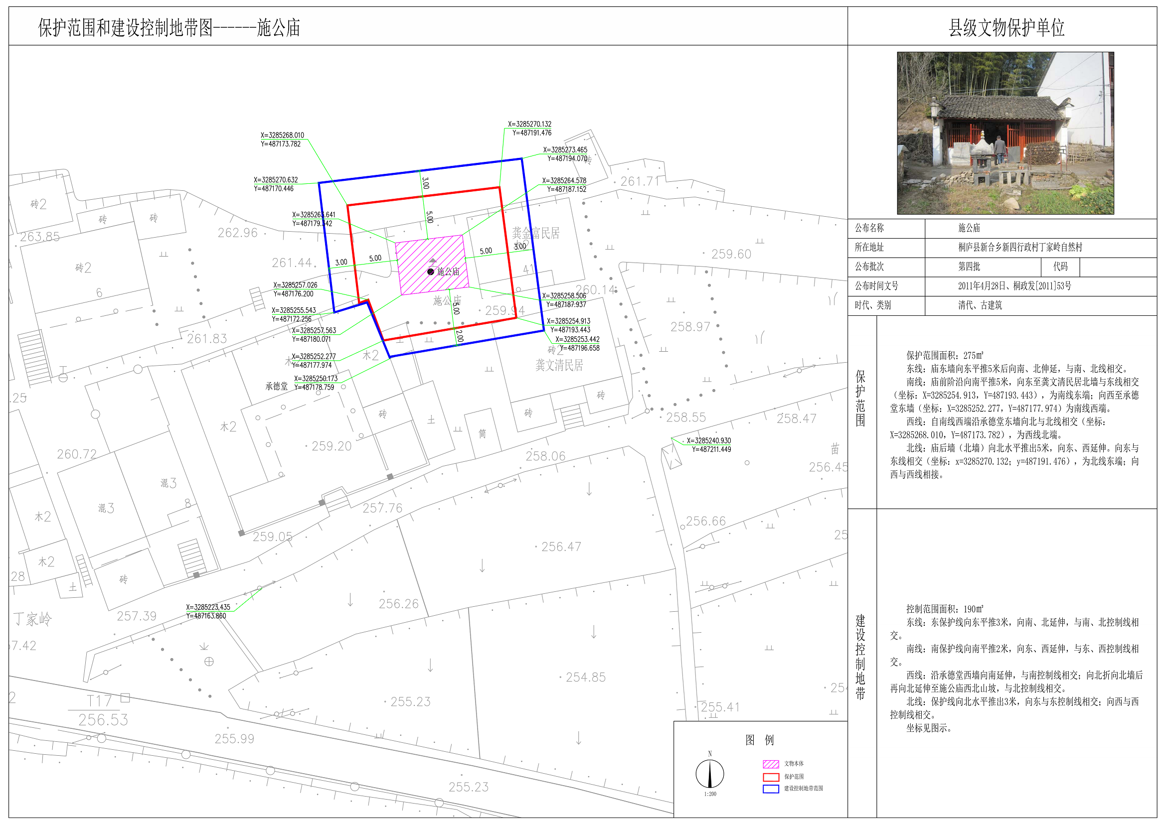 施公庙位于丁家岭村村中心,始建于清乾隆元年(1736),嘉庆、咸丰、光绪及民国二十年(1931)均有修缮,庙内有六对楹联和乾隆丙辰年(即乾隆元年)修庙时挂的“神灵感应”等木匾。施公为何人,无考。现庙内供奉关帝。1996年村民进行维修,施以油漆。