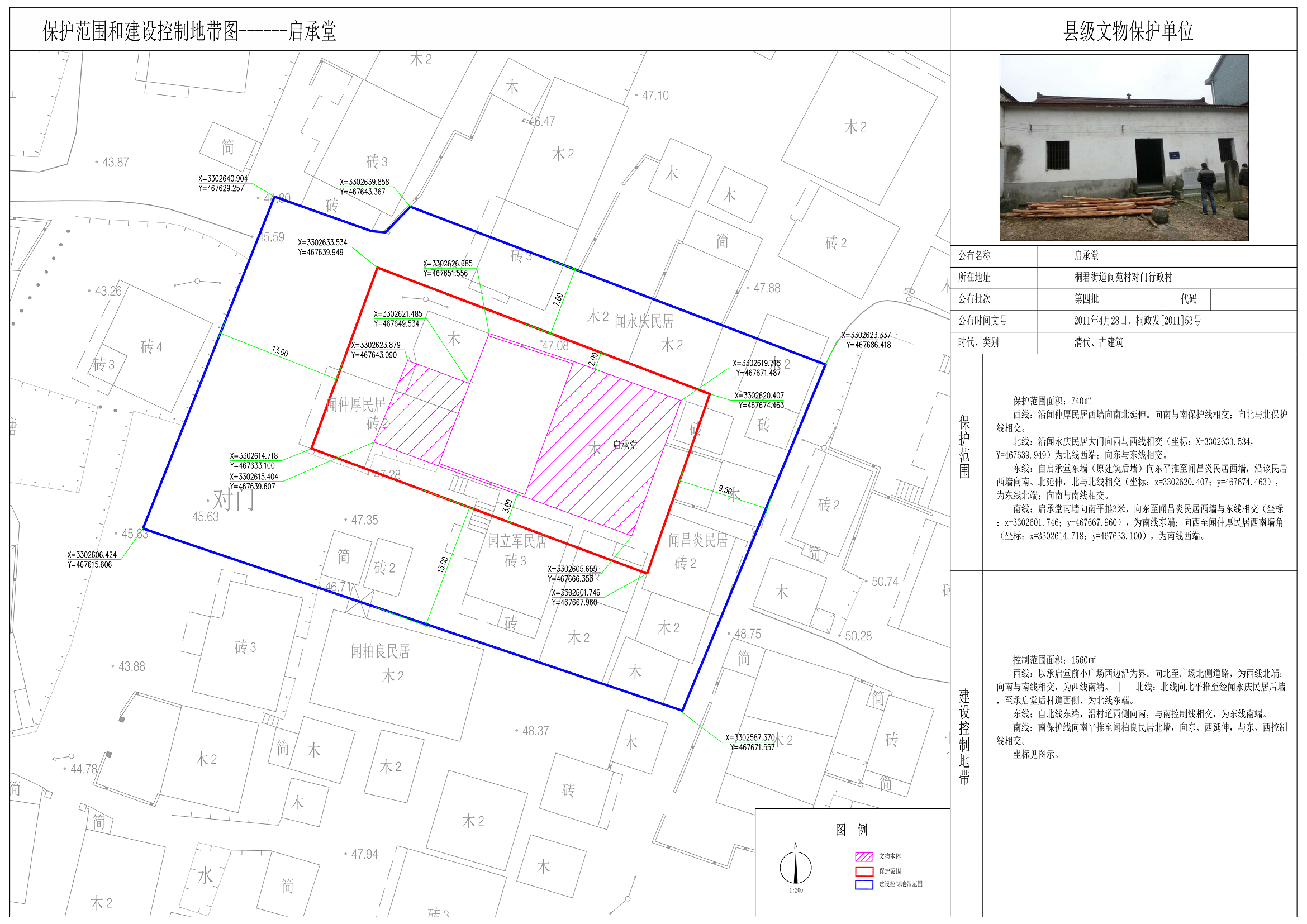 启承堂由明永乐工部主事、吏部郎中、湖广布政司右参政闻质建于明正德年间(1506-1521)。原建筑平面呈工字型,由台门、院落、启承堂和寝宫组成三进建筑。台门前有石坊一座。现存台门、院落和启承堂。