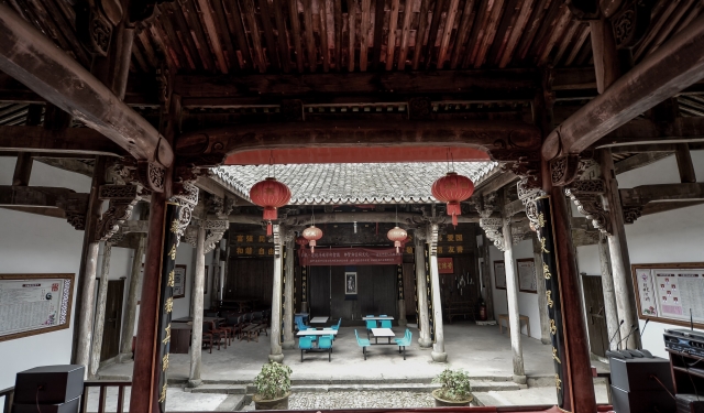 洪家祠堂是典型的清中期宗祠建筑,整体保存情况较完整,布局对称,结构严谨,功能齐全,为研究江浙尤其是浙西宗祠建筑提供了重要实物例证。建筑内部装饰精美,梁枋椽檩、雀替斗栱雕刻花卉、狮子等纹饰图案,精美细致,栩栩如生,具有较高的艺术价值。此外,该建筑作为革命史迹,是浙江抗战史的重要见证。