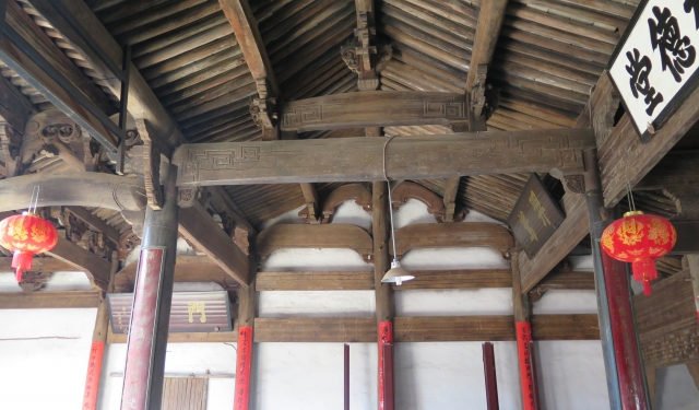 建筑坐东南朝西北,占地面积745平方米,传统砖木结构,由四进及两附屋组成,第一进门楼较有特色为重檐歇山顶,八角外翘,大门两旁设抱鼓石,上雕有麒麟纹饰。面阔三间,进深五柱四间九檩,明间设四柱戏台,梁架五架抬梁带前后双步梁。第一、二进以天井相隔,天井以青石铺地,长5.4米,宽3.7米,中间有一石板横架天井上,用以连接第一、二进。第二进进深五柱四间十檩,梁架为五抬梁前带三步后带双步。第三进三柱二间,五架抬梁。第四进为后来加建,两附屋面阔三间。