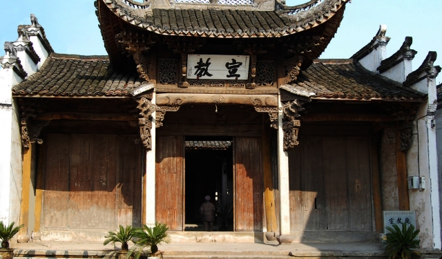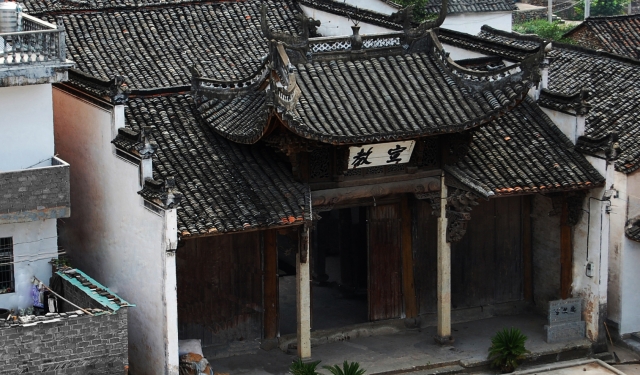 宣教厅位于下金刘村中心。《建德县地名志》记载:“‘下金刘’,位于麻车岗下首。麻车岗原名上金,此地称下金。南宋时,刘姓迁来,遂名下金刘。”宣教厅又名“正谊堂”,大概是出自汉儒董仲舒“正其谊不谋其利,明其道不计其功”之语,取其“正谊明道”之意。据《寿昌县志》及相关资料记载,宣教厅始建于明嘉靖年间,是为纪念祖先刘良所建。刘良,字以能,下金人,宋绍兴四年登进士,官至宣教郎,故将祠堂命名为“宣教厅”。