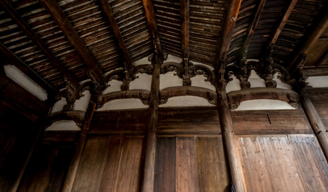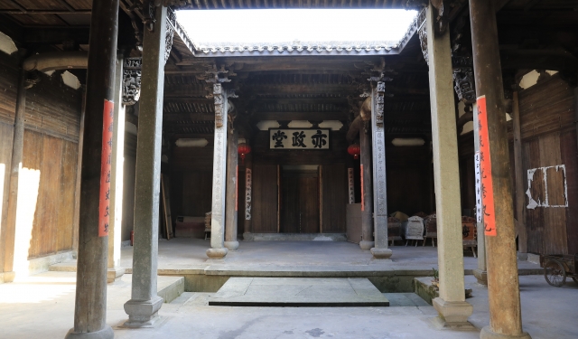 章燮故居布局规整,用材考究,硕大的石木同构的梁柱结构,配套的柱础和覆盆,精致的木雕和前檐廊步卷棚轩装饰,加上楹联的点缀,特显章家书香门第的儒雅和高贵。