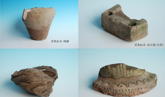 出土瓷器釉色分灰青偏黄,窑变蓝色釉,多施釉不及底部。窑口有陶泥清洗池。由采集标本判断,器型以罐为主,另有钵、韩瓶等。以灰陶为多,胎质较粗。由器型及釉色等初步判断该窑址为宋代窑址。