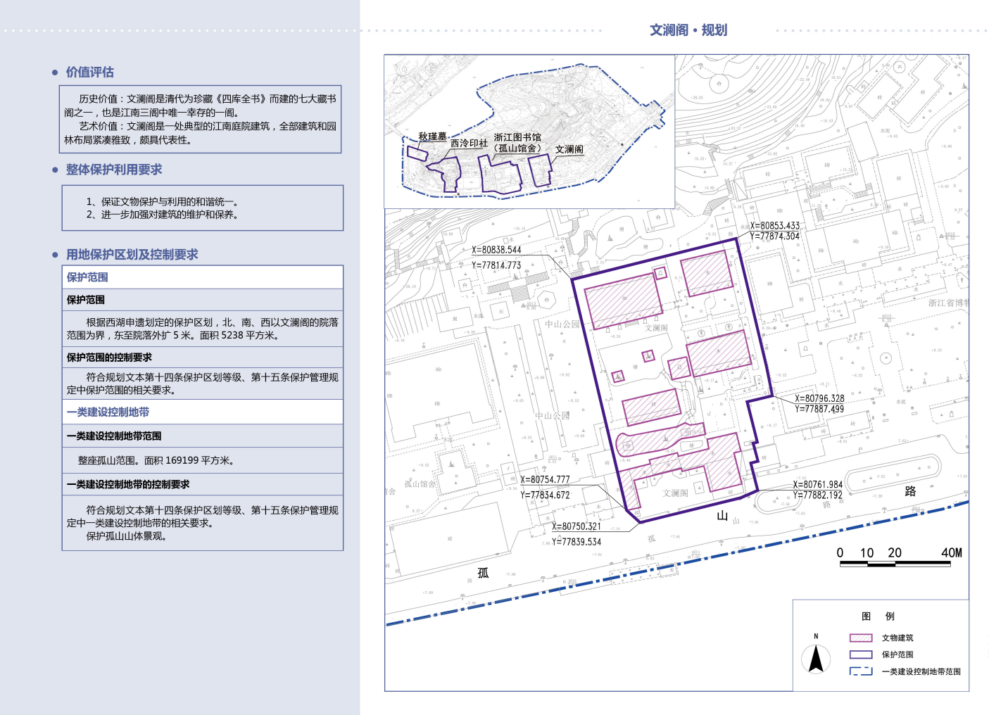 文澜阁位于西湖孤山南麓。该地原为清康熙行宫,雍正五年(1727)改为圣因寺,乾隆十六年(1751)分其为二,复建行宫。乾隆四十七年(1782),为收藏《四库全书》,将圣因寺后的玉兰堂改建为文澜阁,四十九年(1784)建成。咸丰十一年(1861)遭兵燹,光绪六年(1880)在原址重建,并添建厅、亭、假山和“太乙分清室”等附属建筑。