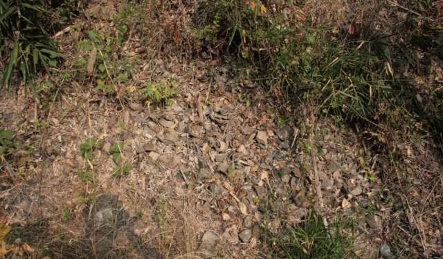 窑坞窑址所在处为一山谷,东南侧近谷底有山间泥路可通,低谷处原有水塘,现已改为耕地,谷北有溪流自西北向东南流经,东有农户聚居。从窑址所在处地形情况看,窑床遗迹应位于东南向坡地上,作坊遗迹应位于山岙处。