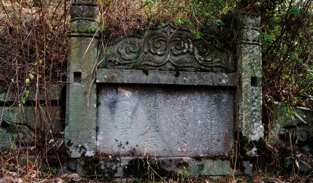 鲁显病逝后,就地葬于梅城凤凰山下。墓坐东北朝西南,封土呈圆形,直径6.5米,高1.65米。墓面宽4.38米,现存墓碑立于明嘉靖四年(1525),清嘉庆元年(1796)重修。整座墓面为青石材质,墓碑形制为横式,贴面镌字从右至左竖书,铭文记述了墓主身份、生平及修葺年份。墓碑居中四行楷书大字“元建德路总管鲁公讳显郡君王氏茔城”。右首上款:嘉靖四年仲春吉立。左首下方落款为:大清嘉庆元年重修。墓面两侧立方形石柱,柱头为莲花装饰,雕刻精细,石柱上下方各留有两个卯孔,据此推断,此处应有一组其他装饰构件,但现已不在。墓前设有拜坛,进深1.5米,整座墓显得古朴肃穆。