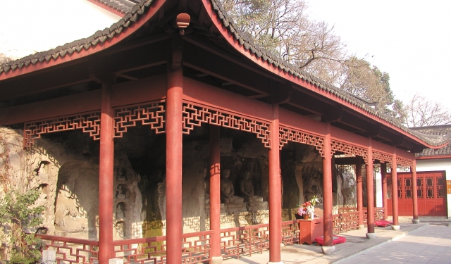 宝成寺麻曷葛剌造像位于吴山东南面的紫阳山东麓山腰的宝成寺内。宝成寺始建于五代后晋天福年间(936~942),为吴越国王钱元瓘妃仰氏所建的功德院,名“释迦院”。北宋真宗大中祥符年间(1008~1016)改名为“宝成院”,南宋宝祐五年(1257)赐额“宝成”。元至治二年(1322)左卫亲指挥使伯家奴凿麻曷葛剌佛于寺内石壁上。明万历四十年(1612)布政使吴用先捐资重建宝成寺的石佛殿,又在附近新建了大观楼及牡丹亭,万历四十五年(1617)麻曷葛剌像又重新彩绘过一次。到了清代初年,这铺造像外还有房屋覆盖,但是宝成寺当时已破落。以后宝成寺的房舍一直作为民居使用。直到1988年宝成寺重建以后,造像前的房舍才被拆除,供游人参观。